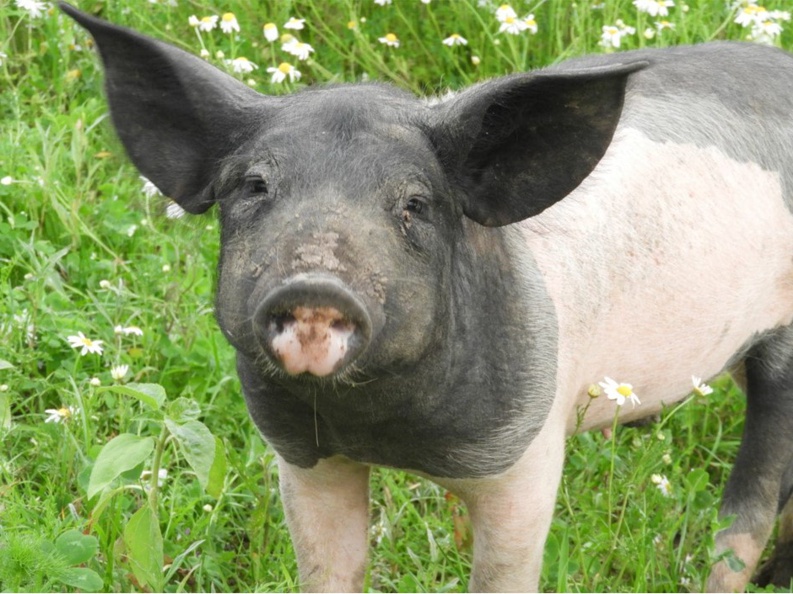 Danach wurde ich zusammen mit 10 weiteren Ferkeln in einen großen Anhänger mit frischem Gras gesetzt – das war sehr interessant, uns hat es da drin sehr gut gefallen. Nach einer rumpeligen Fahrt mit diesem Anhänger kamen wir weit weg in eine Gegend mit Wiesen und Wäldern. Da haben wir vielleicht gestaunt, als wir über die Rampe hinausliefen.